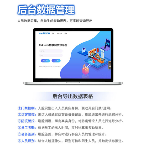 综上,在疫情防控方面,深圳远景达(RAKINDA)人脸测温一体机有效降低了测温时大面积接触人体带来的潜在风险,缩短人体测温时间,提高测温效率。同时集中化的管理,为筛查追溯疑似患者、流动人员提供了实时数据支持,为上述场景下的管理提供了强有力的安全保障。截止目前,深圳远景达(RAKINDA)科技自主研发生产的一系列人脸识别测温门禁一体机已在全国各大学校、医护场所、社区街道、物业写字楼,以及各大企业均实现了场景化部署,并得到了新老客户的一致好评!如果您想代理或有人脸自动测温产品的需求,欢迎咨询www.rakinda.com.cn与我们取得联系。期待我们今后能合作成功!