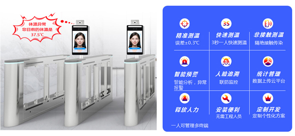 应急时期采购额温枪、道闸、门禁等缺少顶层集成,后期容易被空置,人力成本高,统计误差大,且无法有效保留数据记录。