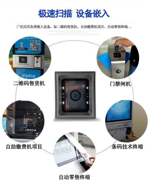 以往的二维条码扫描模组尺寸,大多无法满足嵌入集成到自助贩卖机、售货柜内部形成“扫码区”,可能会为手机二维码(支付码)的识别与感应读取带来不少难处。