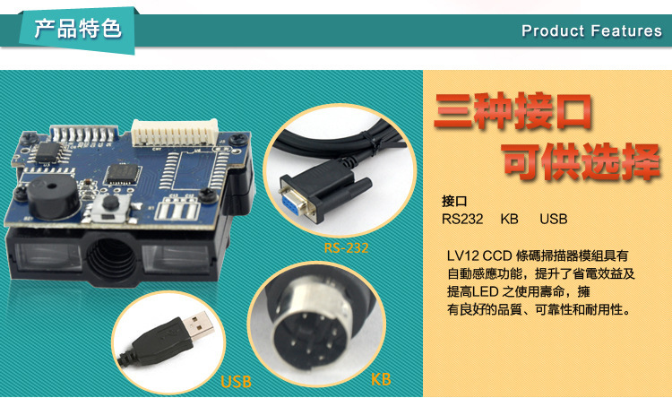 LV12 CCD一维红光扫描模块具有自感应功能,提升省电效益及提高LED之使用寿命,拥有的质量、可靠性和耐用性。