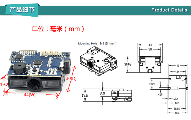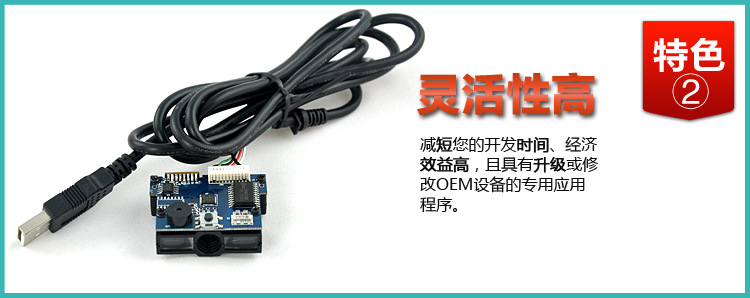在一维条码扫描器模块上它是性价比最高的OEM模组产品,可内嵌到各种设备中。